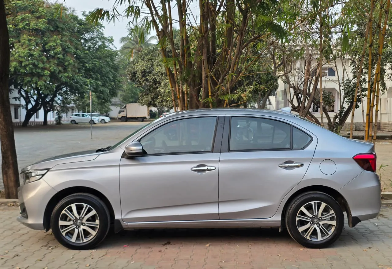 2024/2025 Honda Amaze VX MT petrol, single owner, 19,000 km driven, very well maintained in excellent condition. Full insurance covered. Features include push start/stop, cruise control, alloy wheels, airbags, ABS, reverse camera, parking sensors, leatherette seats, infotainment system, and power windows. Located Laxmi Nagar, Mudichur, Chennai. Price ₹7,99,000.