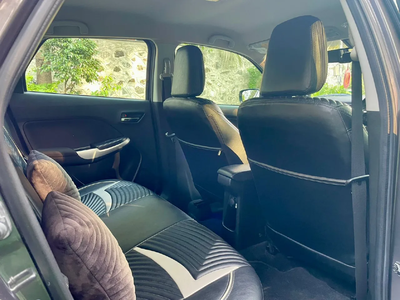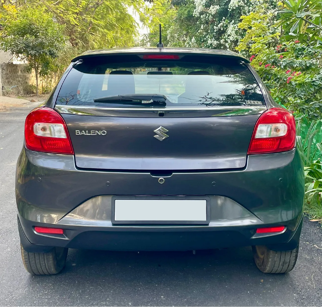 2017 November Maruti Suzuki Baleno Zeta petrol, single owner, just 33,000 km driven, very well maintained in excellent condition. Full insurance valid till November 2026 with new tyres replaced. Non-accidental, non-flooded vehicle. Features include push start/stop, alloy wheels, reverse camera, airbags, ABS, leather seats, fog lamps, and infotainment system. Price ₹5,95,000.