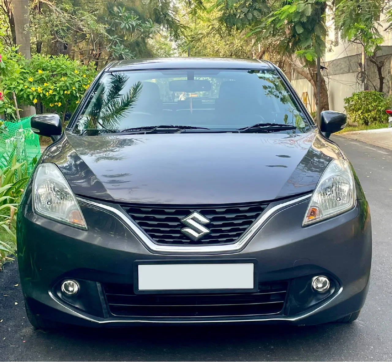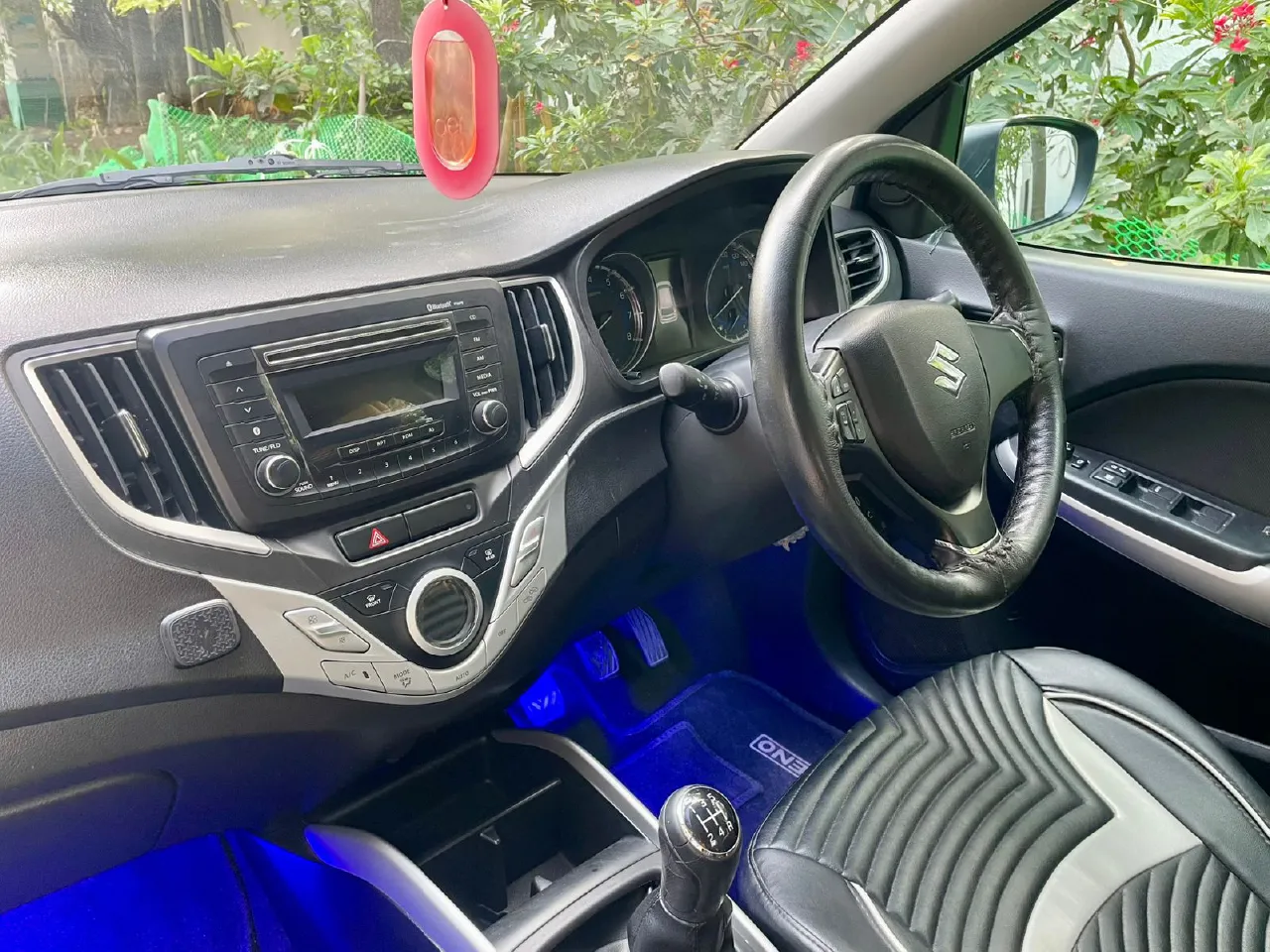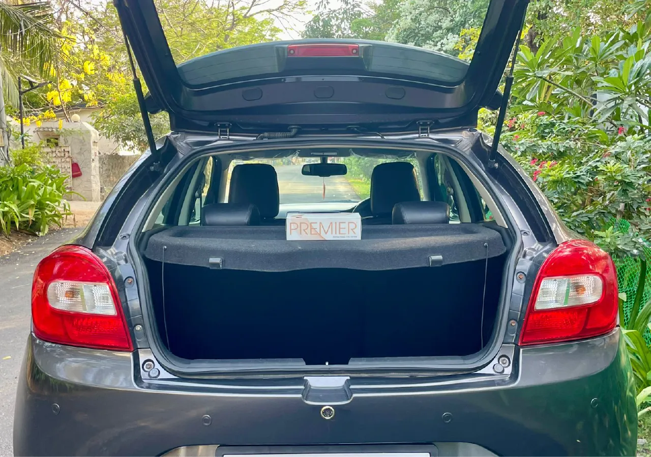 2017 November Maruti Suzuki Baleno Zeta petrol, single owner, just 33,000 km driven, very well maintained in excellent condition. Full insurance valid till November 2026 with new tyres replaced. Non-accidental, non-flooded vehicle. Features include push start/stop, alloy wheels, reverse camera, airbags, ABS, leather seats, fog lamps, and infotainment system. Price ₹5,95,000.